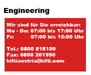 Sie möchten gerne mit einem Hilti-Techniker in Kontakt treten? Bitte wenden Sie sich an unser Mittarbeiter des Kundenservice die Ihnen gerne den für Sie relevanten Techniker vermitteln.