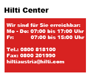 - Klick&Collect: Sie können Online Ihren Einkauf bestellen und bereits eine Stunde später vom gewünschten Hilti Center abholen.